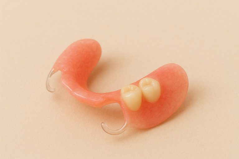 歯が1本でも残っている場合に使用する入れ歯です。残っている歯に金具で引っかけて装着します。